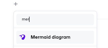 To add a Mermaid block, hit the / key and select the Mermaid diagram block